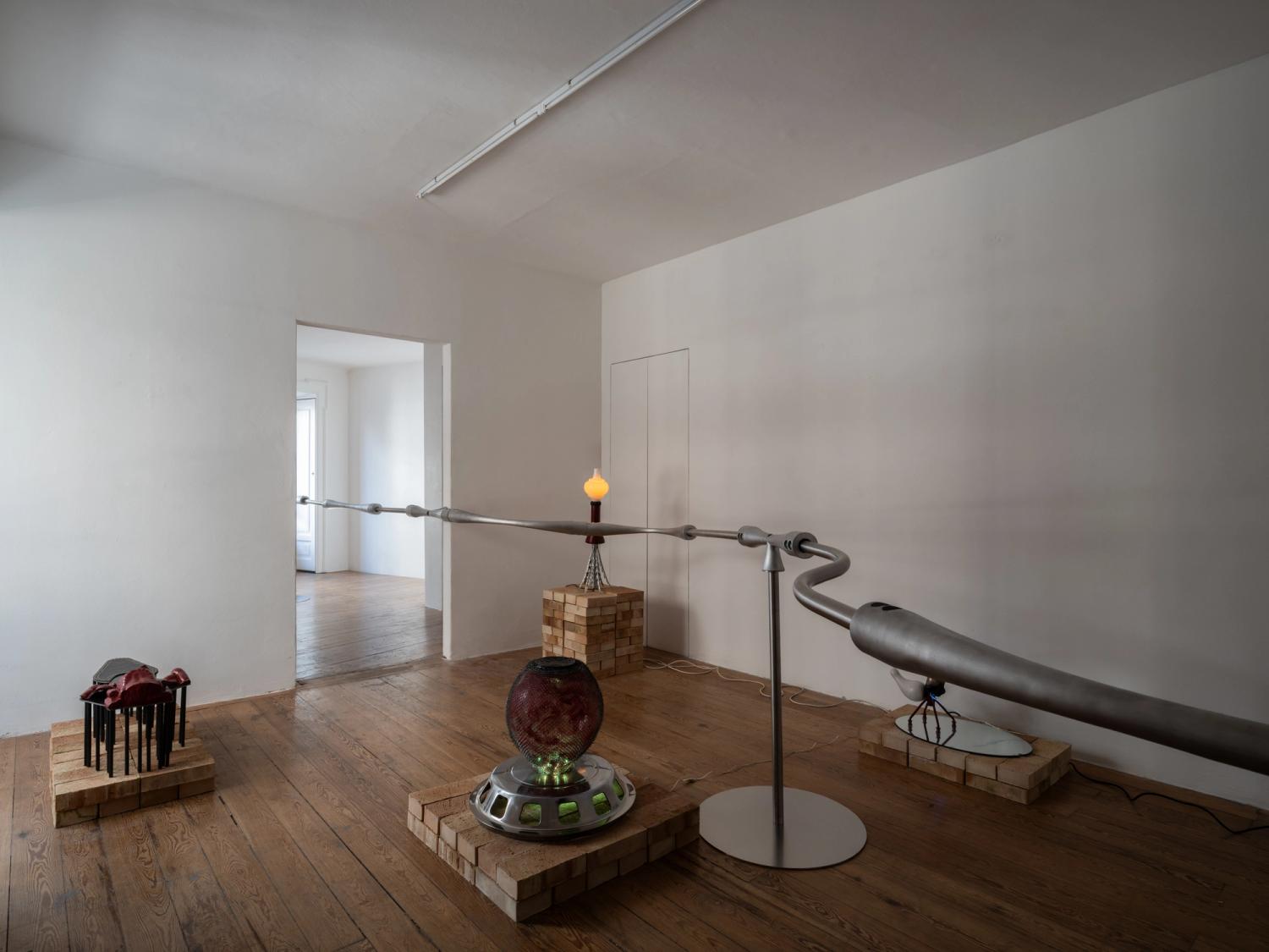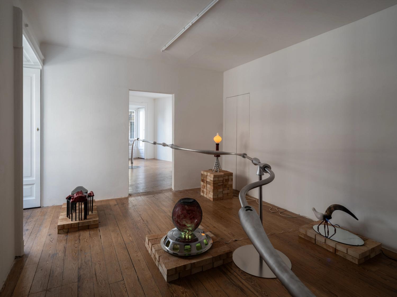 not opposed to tossing bricks into the quotidian, your honor is an infrastructure for inversion where the peripheral seizes the center. Street-born objects, discarded materials, and industrial remnants charged with pop culture and mass media are reassembled, recontextualized, and reborn. Trash made pristine, utility made dubious, worth made questionable. In Dozie Kanu’s hands, these sculptural interventions unravel the logic of value, function, and what deserves presence in public and private space, critiquing both late capitalism and the art world’s fetish for the overlooked.